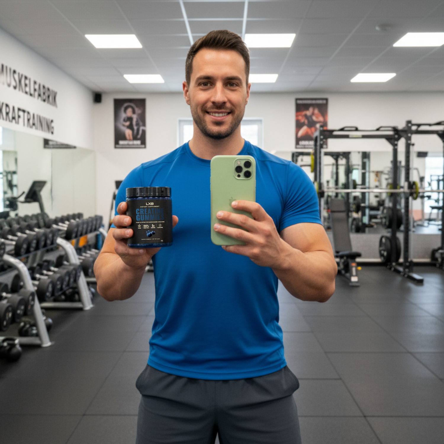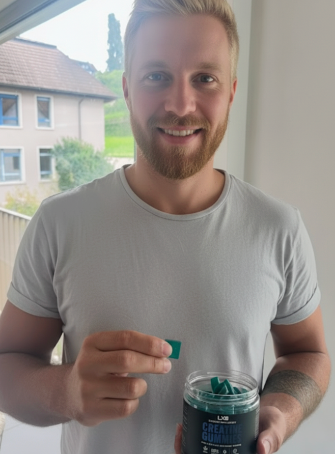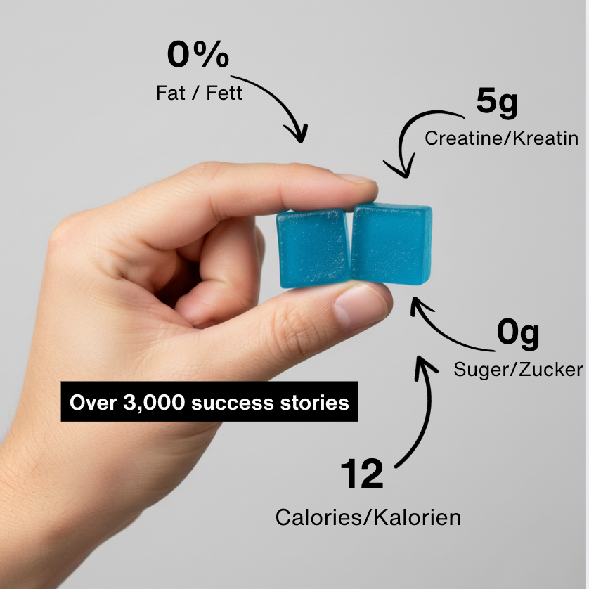 "Ich liebe diese Creatine Gummise! Sie schmecken super und ich fühle mich stärker, definierter und endlich konstant beim Training!" - Laura